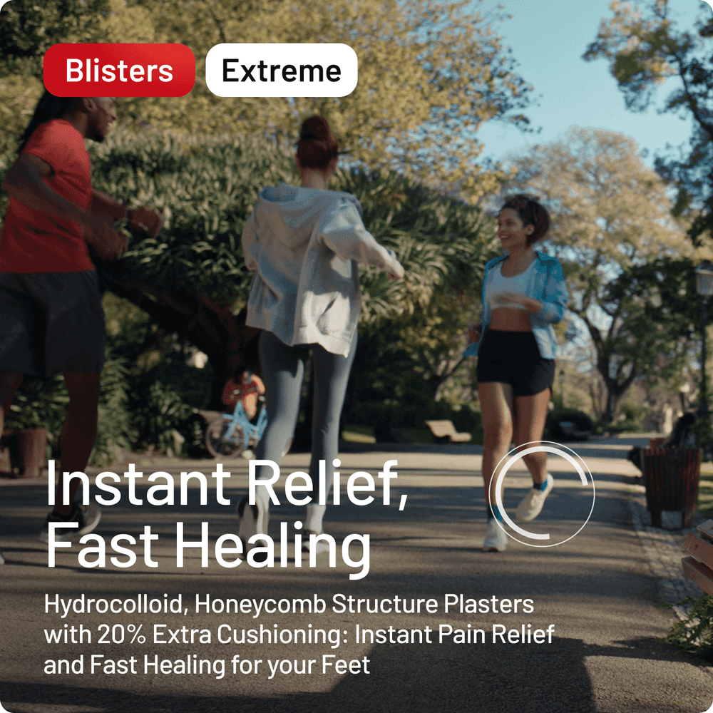 Compeed® Extreme Blister Plasters with advanced hydrocolloid technology for instant pain relief and fast healing. The honeycomb structure provides 20% extra cushioning* for optimal comfort and protection during any high intensity activity. Designed for very painful blisters, such as those caused through sporting activities