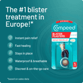 Compeed® hydrocolloid plasters contains particles that absorb fluid from the wound (called exudate) to create a gel, maintaining a moist environment that helps facilitate healing. Thick cushioning redistributes pressure from the blister to deliver instant pain relief. Compeed® has a tapered edge so it contours smoothly with the skin’s surface. This reduces friction and ensures the healing process is not disrupted by painful rubbing. Stays in place for up to 7 days. Individual experience may vary.