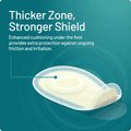Compeed® hydrocolloid plasters contains particles that absorb fluid from the wound (called exudate) to create a gel, maintaining a moist environment that helps facilitate healing. Thick cushioning redistributes pressure from the blister to deliver instant pain relief. Compeed® has a tapered edge so it contours smoothly with the skin’s surface. This reduces friction and ensures the healing process is not disrupted by painful rubbing. Stays in place for up to 7 days. Individual experience may vary.