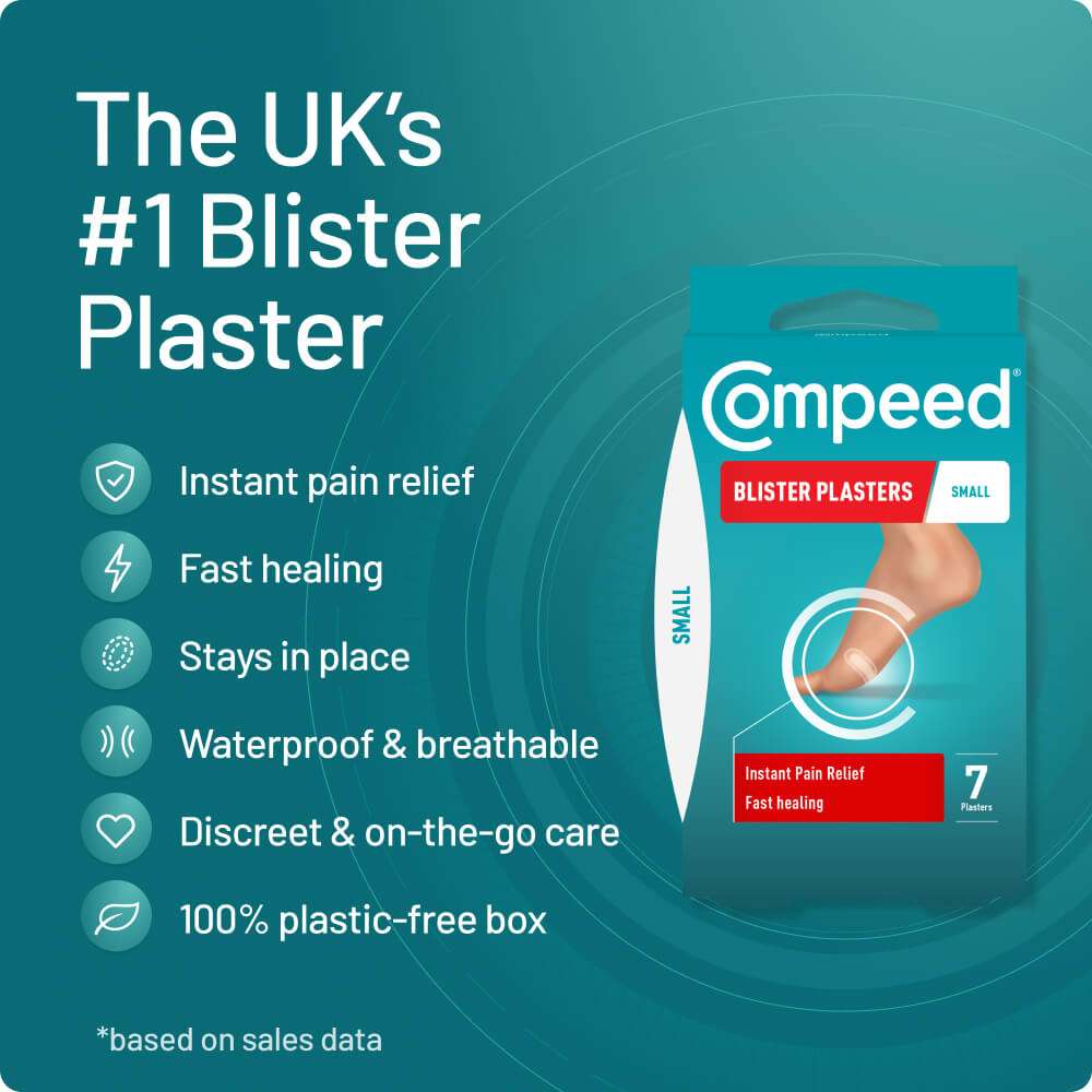 If you're wearing shoes that make you more prone to blisters protect your feet from rubbing and friction with Compeed Blister Plasters. You can also prevent blisters by wearing two pairs of thin socks when exercising. Be sure to read our full blister prevention advice.